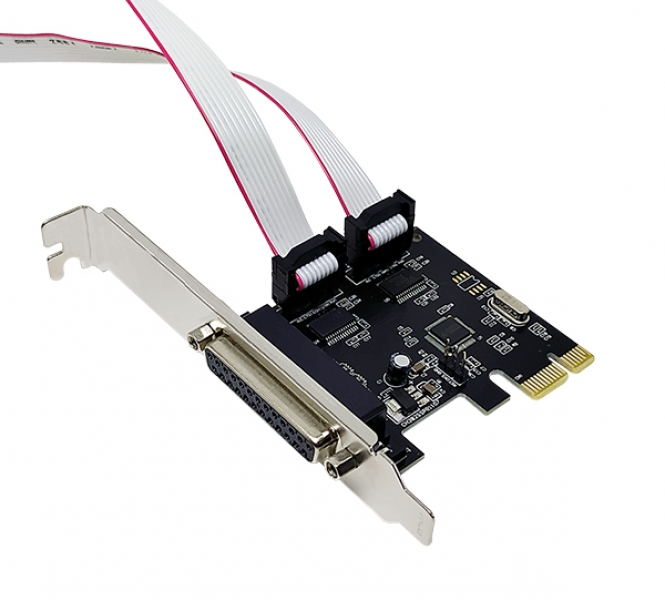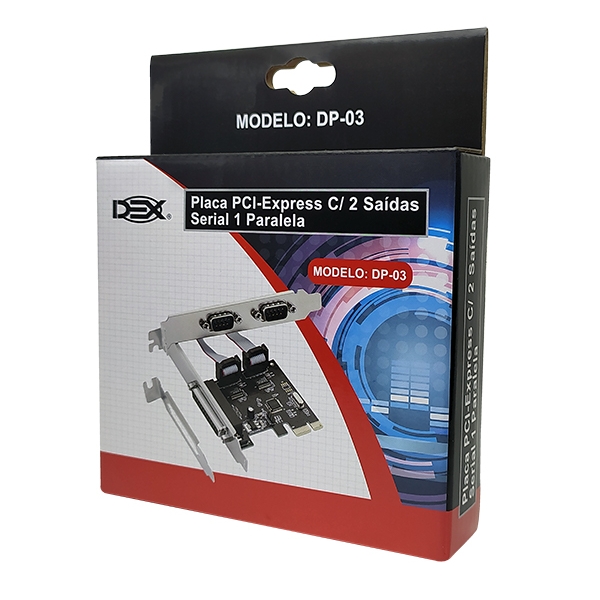 - Cria 2 portas seriais e 1 porta paralela através de uma placa externa com barramento/ slot PCI Express.